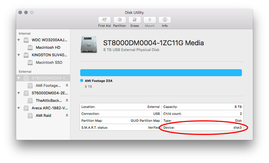- When both of the previous tests have proven the drives to be healthy, launch Disk Utility and format the drives appropriately. At this time with external HDDs, guidelines are: