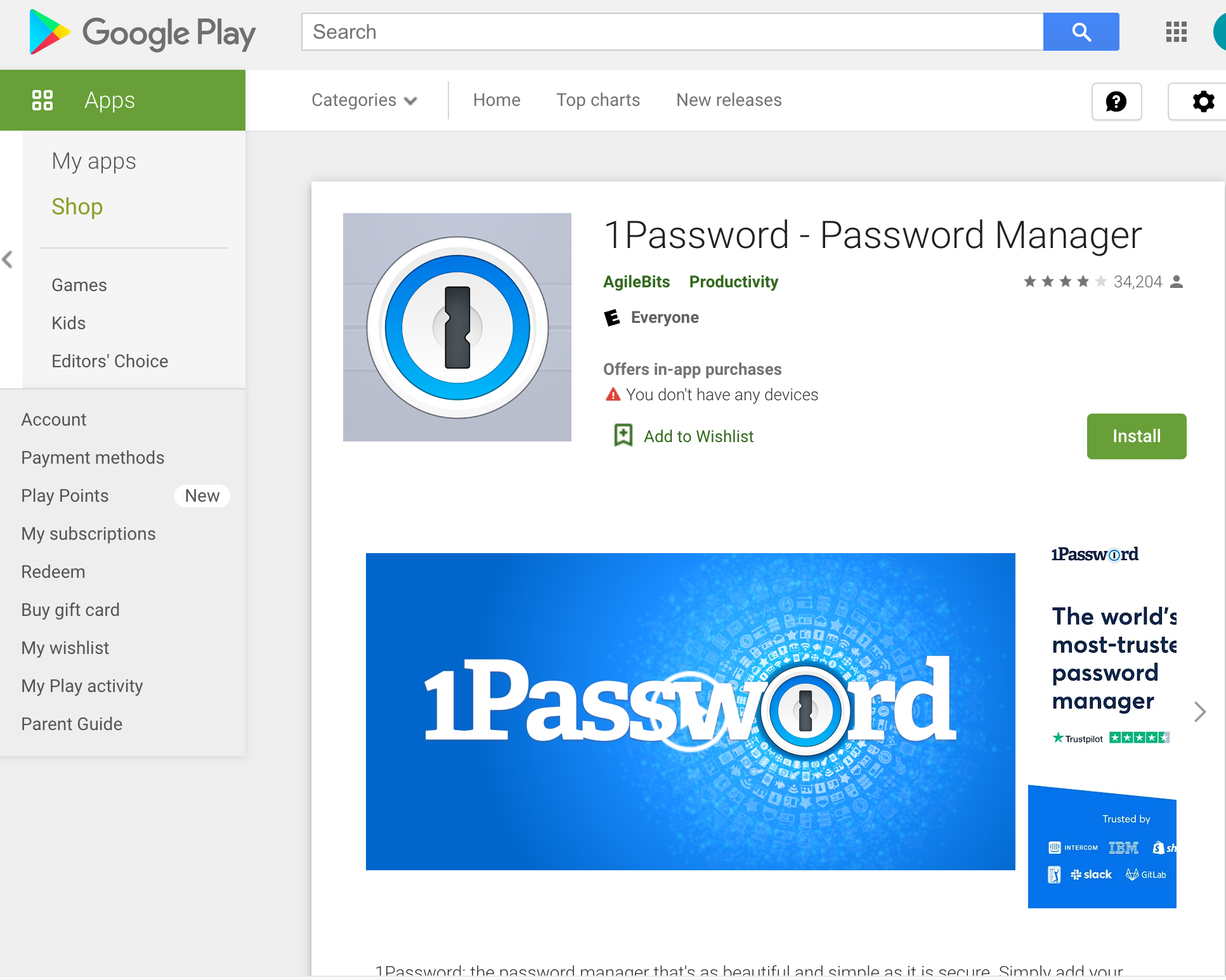 Tap on the blue "Download 1Password for Android" button. It will send you to the Google Play store.