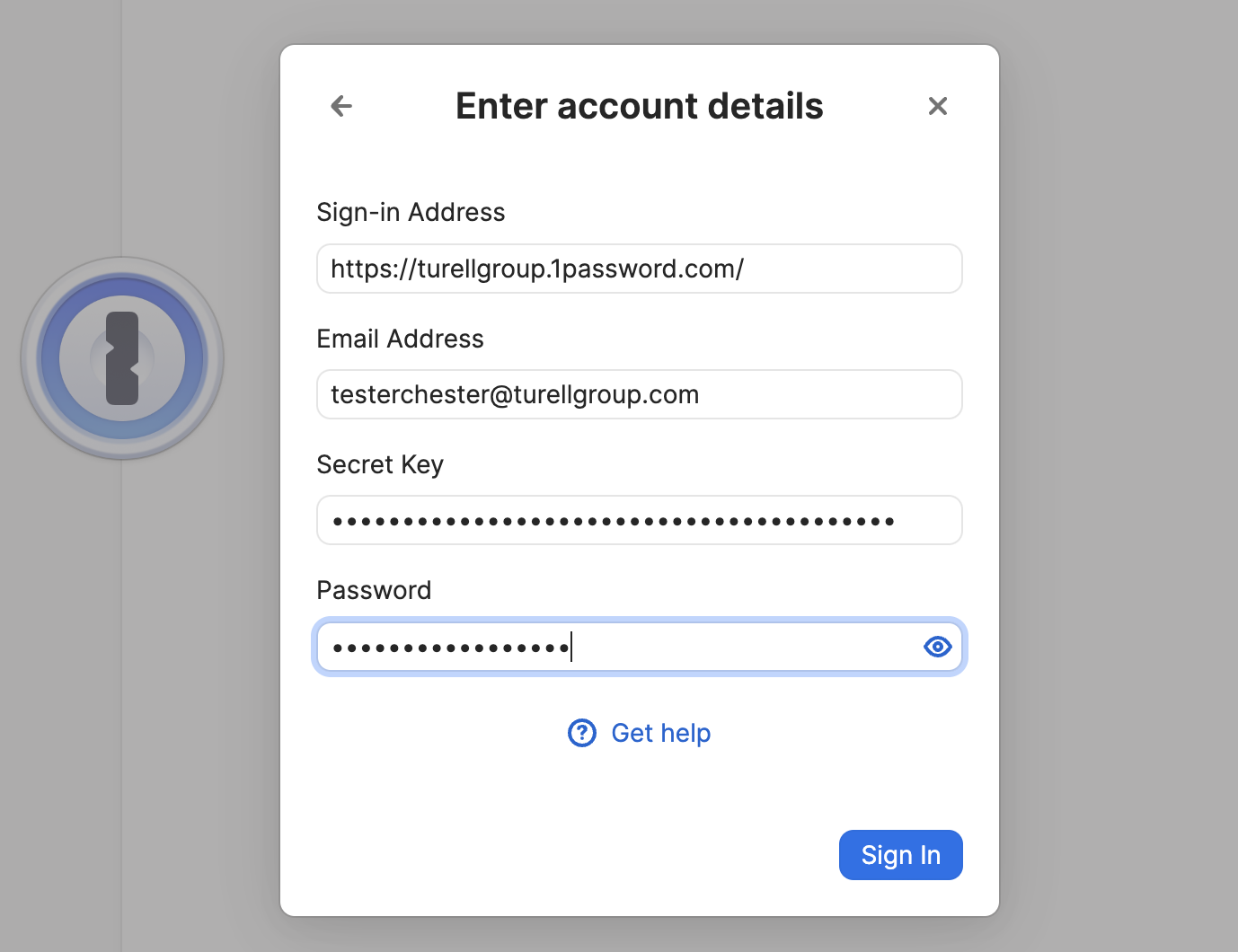 If this is the first device you're setting up with 1Password, these Account Details can be found in your 1Password vault, the one that you first gained access to via an email sent to your inbox. (See the Retrieving Your 1Password Account Info section for more info.