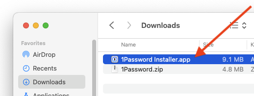 1Password.zipfile, and then run1Password Installerapp.(Note: Depending on your Finder settings, the app name may not include the .app filename extension. It may also be automatically unzipped for you, in which case you will only see the Installer app and not the .ZIP file.)