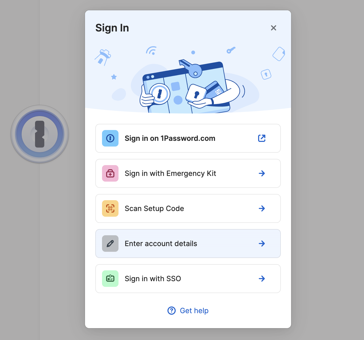 You will need four things in order to sign into 1Password:
