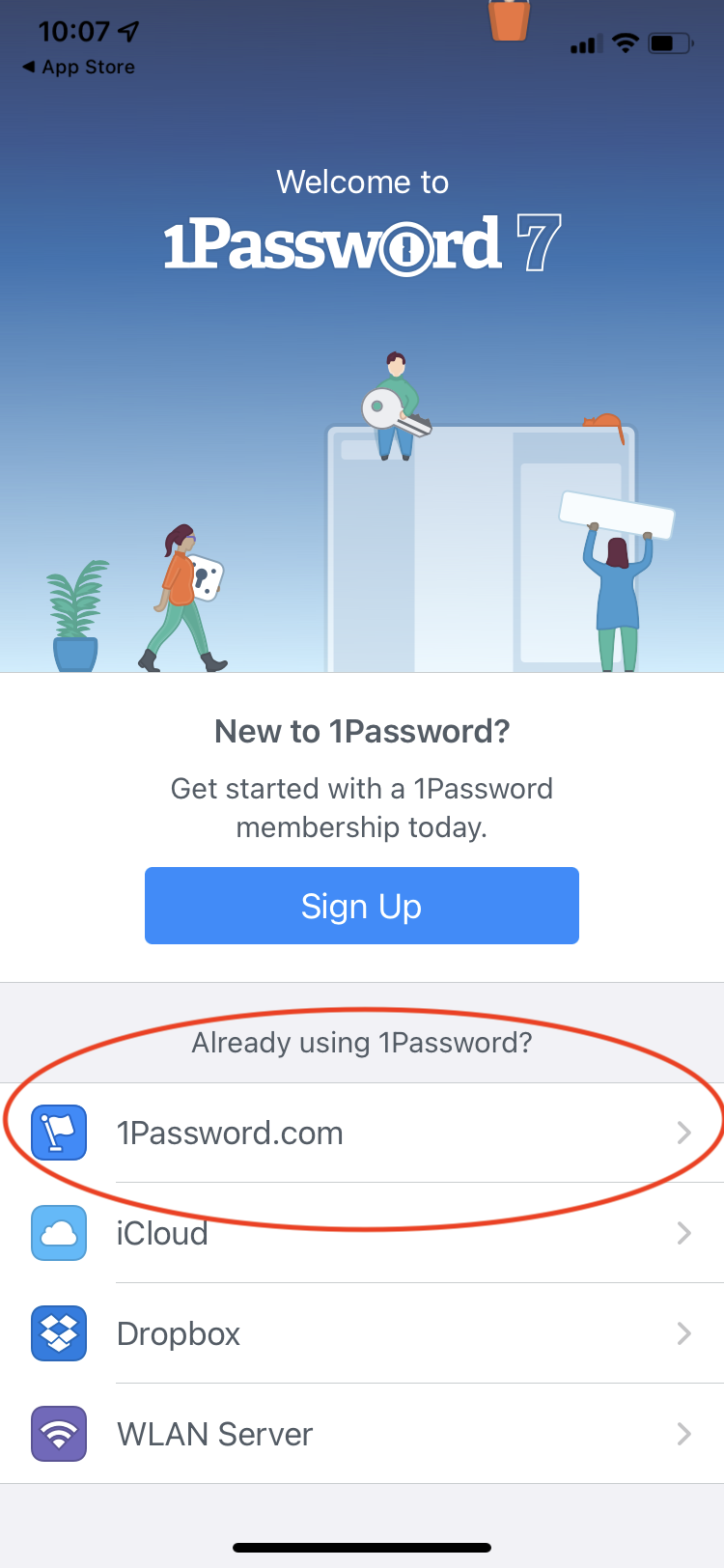 • Prep by loading the website on your desktop machine, should be similar to companydomain.1password.com. If you locate your 1Password entry in your named vault, clicking Open & Fill should work, then head to your name in the top right -> My Profile.