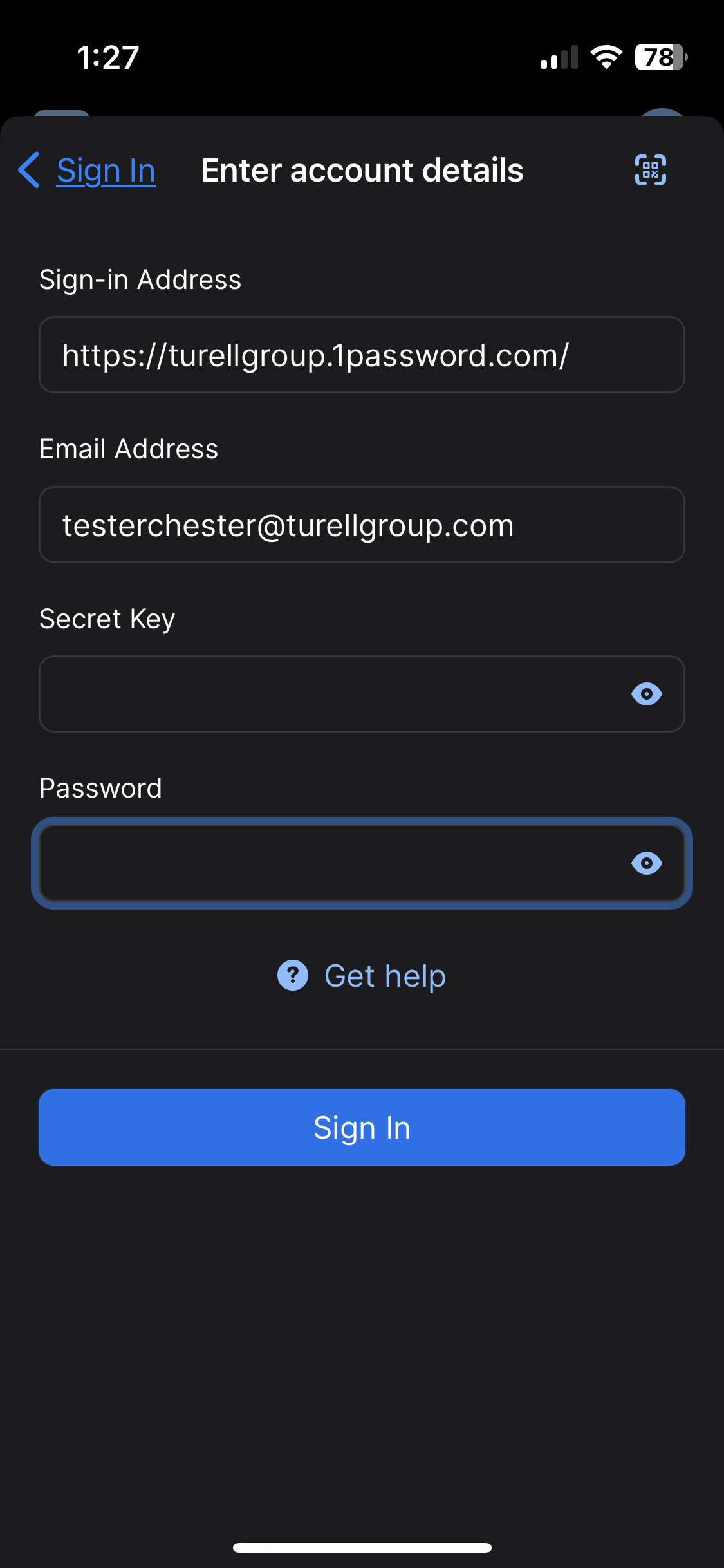 ▼__)You should have already gone through the setup process for the 1Password app on your desktop/laptop computer or someone may have already done it for you. But if you haven't (or you don't even have the desktop app) you'll need to complete that setup in order to continue here. Talk to IT if you need help.