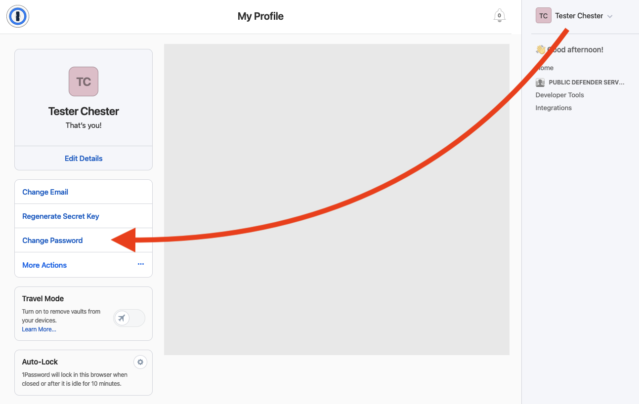 It's fairly straightforward to change your master password for your 1Password account. However there is an added complication that you must also record that change in the 1Password Item in your Vault. If the new password is not recorded correctly, it may cause problems in the future. But one benefit of recording it in the 1Password Item is the optional use of the password generator built into the 1Password app. You will see this in later steps. This section will guide you through the process of changing your password and adding it to the 1Password Item in your Vault.