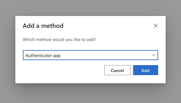 Click Choose a method to expand the dropdown menu and select Authenticator app.